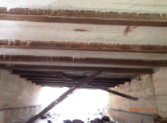 Severe corrosion and 100% section loss of the bottom flange.